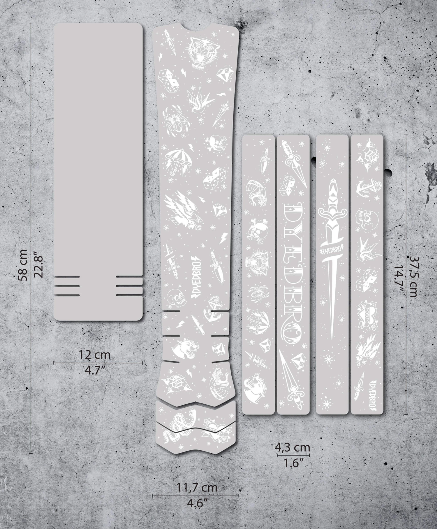 - Ontworpen om de bovenbuis, onderbuis, achtervork en kettingkast te beschermen met een totaal van 8 stuks