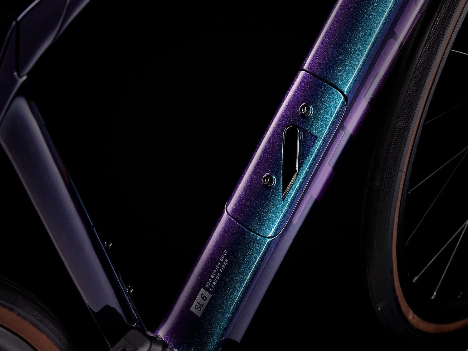 Frame: 500 Series OCLV Carbon, IsoSpeed, geïntegreerd opbergvak, taps toelopende balhoofdbuis, interne kabelgeleiding, 3S kettinggeleider, spatbordogen, Flat Mount schijfrembevestiging, 142 x12 mm steekas