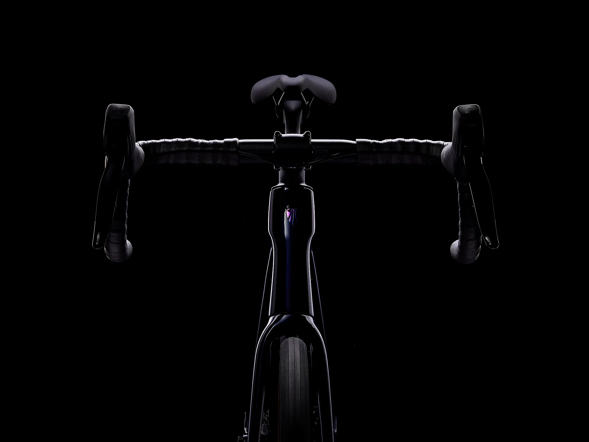 Handvat:Â Bontrager Elite IsoZone VR-SF, aluminium, 31,8 mm, interne Di2 kabelgeleiding, 75 mm reach, 128 mm drop, 44 cm breedte (58/60/62)