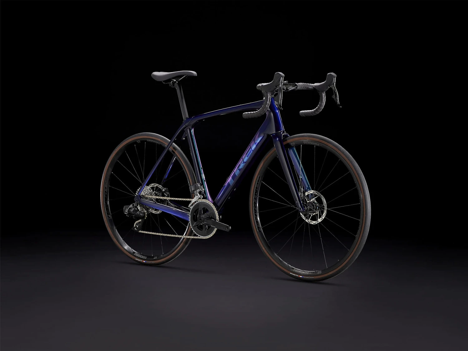 Vork: Domane SL, carbon, conische carbon stuurbuis, interne remkabelgeleiding, spatbordogen, Flat Mount schijfrembevestiging, 12 x 100 mm steekas